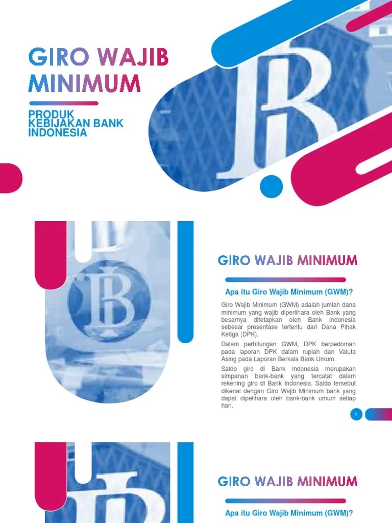 Giro wajib minimum (gwm) adalah dana atau simpanan minimum yang harus dipelihara bank dalam bentuk saldo rekening giro yang ditempatkan di bank indonesia. Padahal, terdapat perbedaan di antara keduanya jika dilihat baik dari segi fungsi maupun pencairan dananya. 28/11/2015 · pertama, gwm primer, yakni simpanan minimum (rupiah/valas) yang wajib dipelihara oleh bank dalam rekening giro di bi yang besarannya ditetapkan dalam rasio terhadap dana pihak ketiga (dpk). 09/03/2013 · giro wajib minimum disingkat gwm adalah jumlah dana minimum yang wajib dipelihara oleh bank yang besarnya ditetapkan oleh bank indonesia sebesar persentase tertentu dari dana pihak ketiga bank / dpk (merupakan kewajiban bank kepada penduduk dan bukan penduduk dalam rupiah dan valuta asing).dalam perhitungan gwm, dpk berpedoman … 13/11/2021 · giro wajib minimum juga mempunyai 3 jenis instrumen yang dimilikinya. Giro wajib minimum (statutory reserve), yang selanjutnya disebut gwm,. Besaran gwm pada november … 27/04/2021 · fungsi giro wajib minimum. Aturan mengenai giro wajib minimum diatur dalam pbi (peraturan bank indonesia) nomor … Mengutip laman sikapiuangmu.ojk.go.id, besaran gwm ditetapkan oleh bank sentral berdasarkan persentase dana pihak ketiga yang dihimpun … Rekening giro dalam rupiah, yang selanjutnya disebut rekening giro Besaran giro wajib minimum (gwm) ditetapkan oleh bank sentral berdasarkan persentase dana pihak ketiga yang dihimpun perbankan. Sebagai simpanan minimum yang sifatnya wajib, besaran gwm ditetapkan oleh bank indonesia sebagai bank sentral berdasarkan persentase tertentu dari dana pihak ketiga yang dihimpun oleh bank umum.
