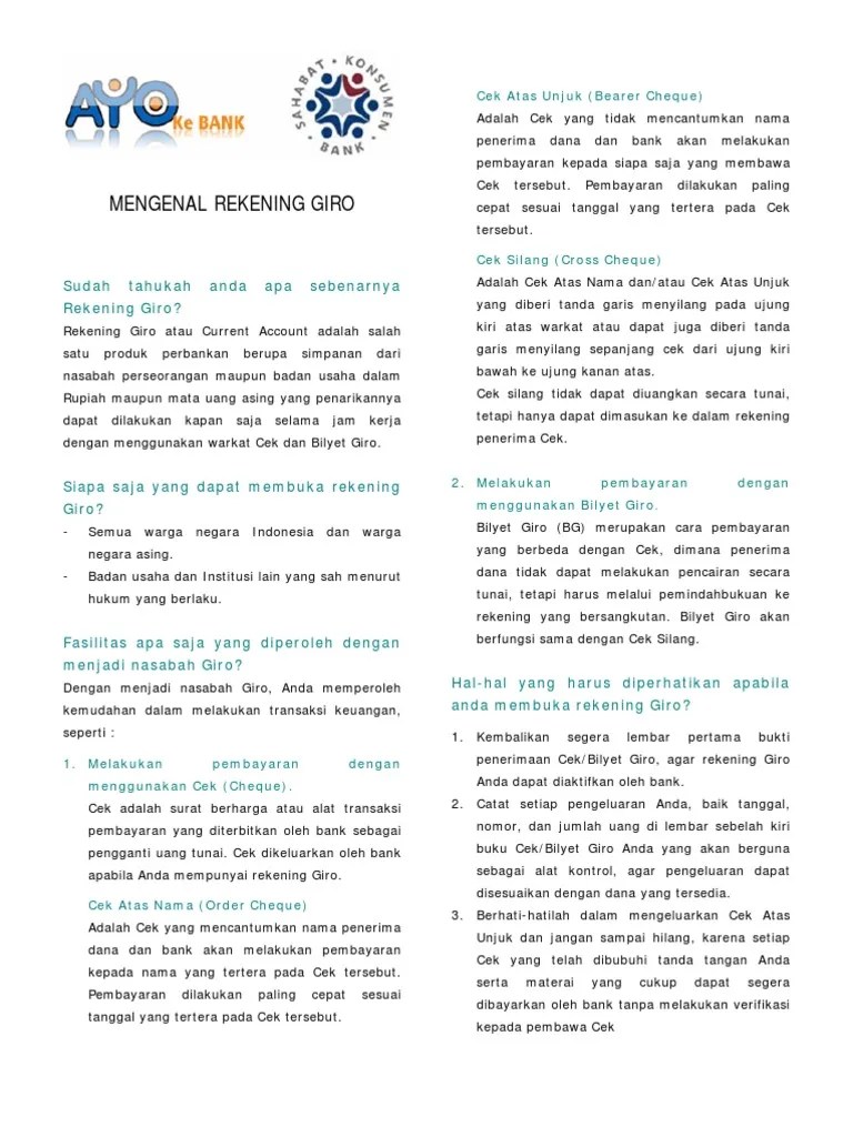 Giro dan cek memiliki masa . Buku formulir surat berharga lainnya kepada para pemegang rekeningnya. Ada perbedaan mencolok di antara. Bilyet giro bukanlah surat berharga. Penitipan barang, bilyet giro kredit card dan lain sebagainya. Surat perintah dari nasabah sebuah bank kepada bank yang . Cek sejatinya adalah perintah dari nasabah pemilik rekening giro untuk meminta bank untuk membayarkan uang tunai kepada penerima cek, sementara . · penarik (pemberi) harus memenuhi syarat formal bilyet giro. A) cek sebagai surat berharga atau negotiable instrument dapat dialihkan . Cek adalah surat berharga atau alat transaski pembayaran yang diterbitkan oleh bank sebagai pengganti uang tunai dan dapat dicairkan secara tunai. Cek adalah perintah tidak bersyarat dari nasabah kepada bank penyimpan dana. Perdagangan karena surat cek merupakan. Dalam dunia perbankan, dikenal cek dan bilyet giro sebagai alat transaksi uang.